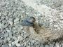 巣が落ちて壊れ呆然としているツバメのヒナ